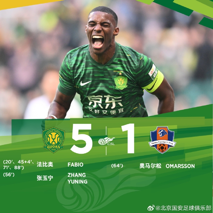 易边再战,第56分钟,达万右路传中,林良铭包抄射门被扑,张玉宁补射立功,再度扩大比分!第65分钟,梅州客家由奥马尔松攻入一球。第70分钟,张稀哲替补登场,完成个东说念主第419次出场,特别杨智,球队历史出场数排行第二。第71分钟,刚刚上场的张稀哲忘我助攻法比奥,匡助后者完成帽子戏法。第79分钟,池忠国替补登场,达成各项赛事代表北京国安第200次出场。第87分钟,法比奥开脱珍重,贯穿射门再下一城,成为球队历史上首个在工体完成大四喜的球员!