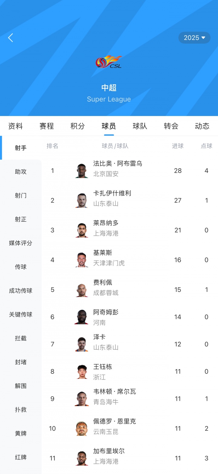 11月22日讯 2025赛季中超治安,末轮比赛法比奥大四喜,瓦科梅开二度,最终法比奥反超瓦科夺得本赛季中超金靴。