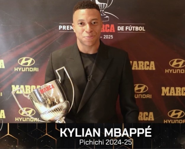 11月25日讯 马卡报官方秘书,皇马先锋姆巴佩在本日领取了该媒体所开拓的24-25赛季“皮奇奇”奖。