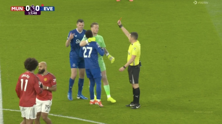 11月25日讯 曼联vs埃弗顿第13分钟,盖耶被直红罚下,曼联多打一东谈主!回放给到,曼联一波紧迫抑止后,盖耶表情很甘愿,和队友基恩浓烈争吵,并给了他一巴掌!