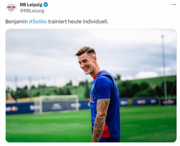 8月5日讯 当天,莱比锡官方发布了塞斯科在球队的历练照,并写谈:“塞斯科今天进行个东谈主历练。”