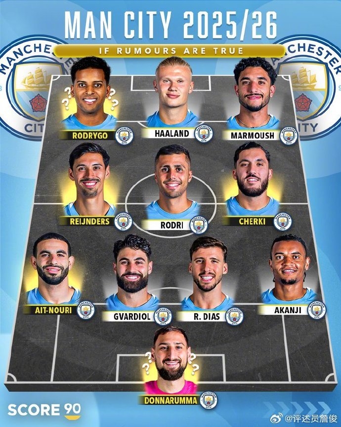 08月12日讯 闻名评述员詹俊在个东谈主社媒晒出了新赛季曼城潜在首发/替补两套威望的瞻望图,并批驳谈: