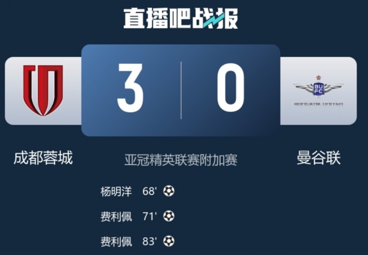 8月13日讯 在8月12日晚的亚冠精英联赛附加赛中,成皆蓉城以3-0礼服泰国曼谷联,初次晋级亚冠精英联赛正赛。