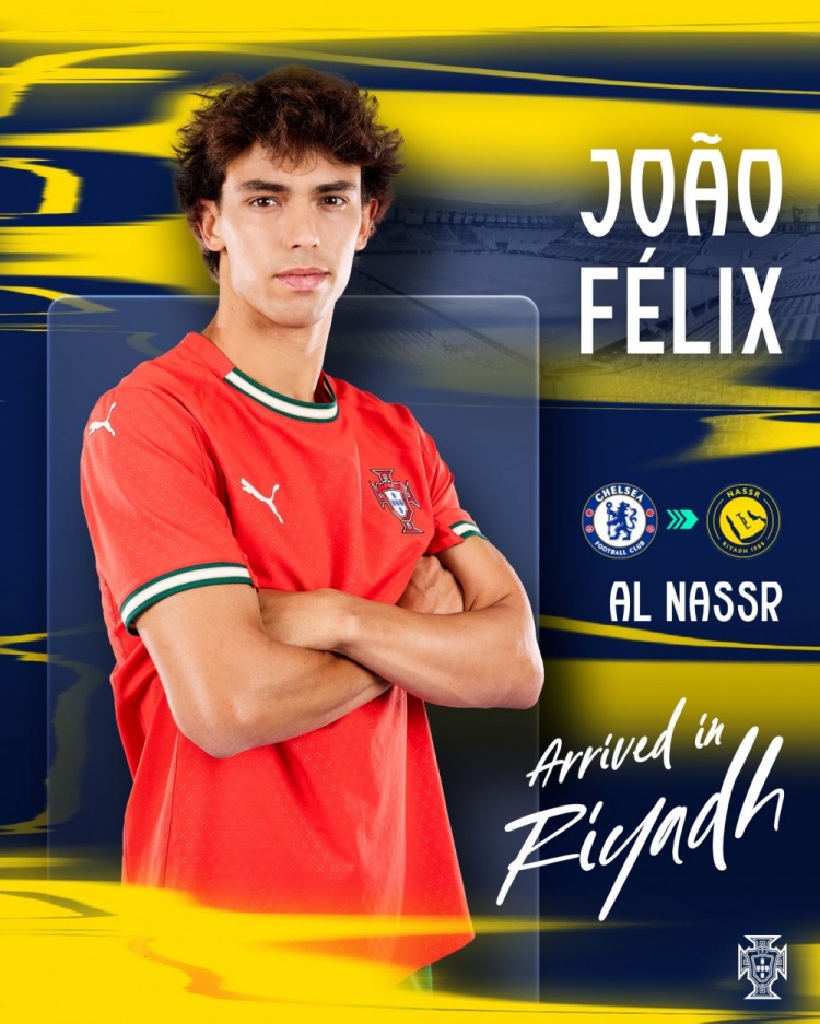 葡萄牙国脚菲利克斯从切尔西转会利雅得得手,葡萄牙队社媒晒出海报,配文:“从伦敦到利雅得,祝你好运,菲利克斯!”