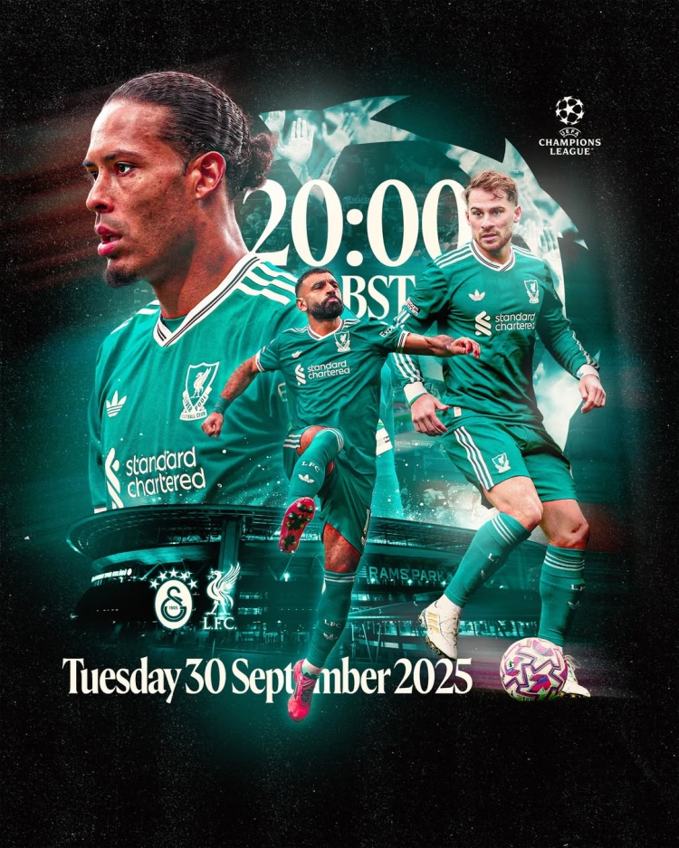 利物浦官方更新社媒动态,晒出为此役制作的海报,萨拉赫、范迪克、麦卡利斯卓绝镜。