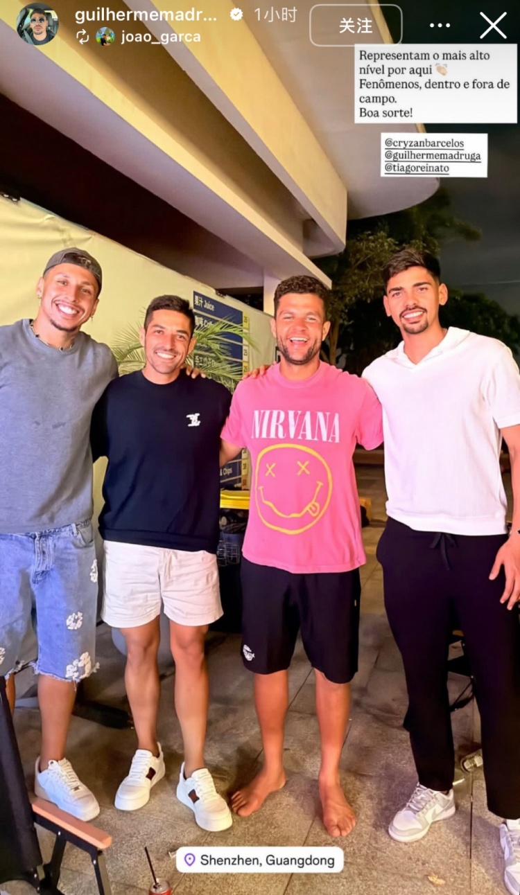 10月20日讯 本日,泰山队外助马德鲁加更新社媒,晒出和队友克雷桑等的合影,定位裸露几东谈主在深圳。