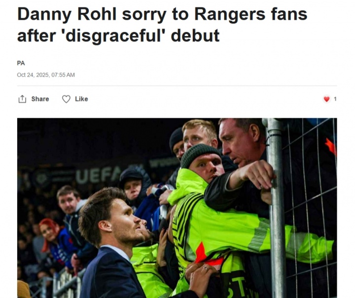 罗尔本周刚被任命为流浪者新帅,周中就遇到惨败,赛后他走向场边的远征球迷,迎面向他们阐扬并谈歉。