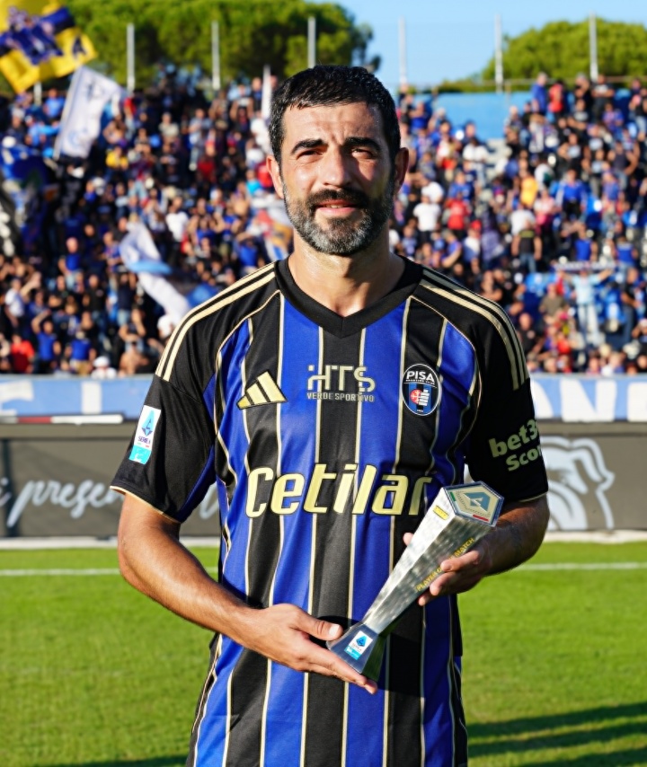 本场比赛40岁的莫德里奇当选MVP,演绎宿将不死的精彩剧目。而在比萨阵中,也有一位40岁据说宿将首发出战米兰:阿尔比奥尔。