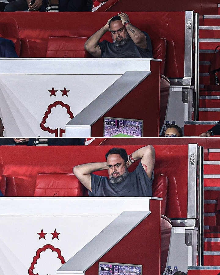 看台上,诺丁汉丛林雇主、希腊船王马里纳基斯额外沉闷,弃世注释+抱头怒视,看着场上的比赛。