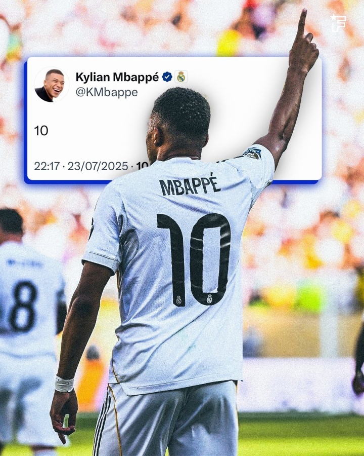 姆巴佩更新社媒,实质仅一个数字“10”,疑似自宣接过皇马10号球衣。