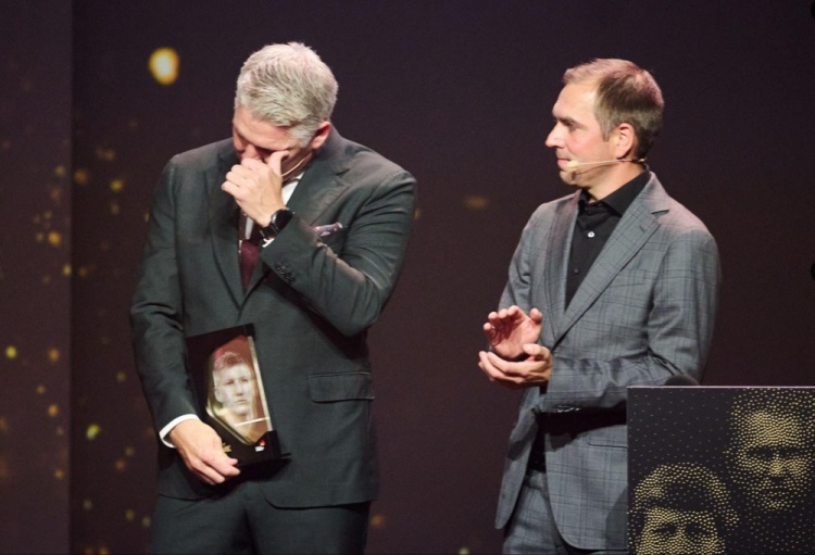 在庆典上,施魏因施泰格老泪纵横,他说谈:“八成赢得如斯招供关于我而言道理超卓。”施魏因施泰格的前队友托马斯-穆勒通过视频奉上了道贺,而他的另外一位前队友拉姆则为他颁发了奖杯。