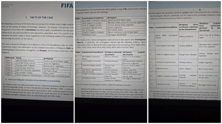10月07日讯 外洋足联公布了对马来西亚足协以及七名归化球员选择圭表刑事职守的充分根由,证据在球员注册历程中提交的祖父母出身地存在作秀变嫌面貌。