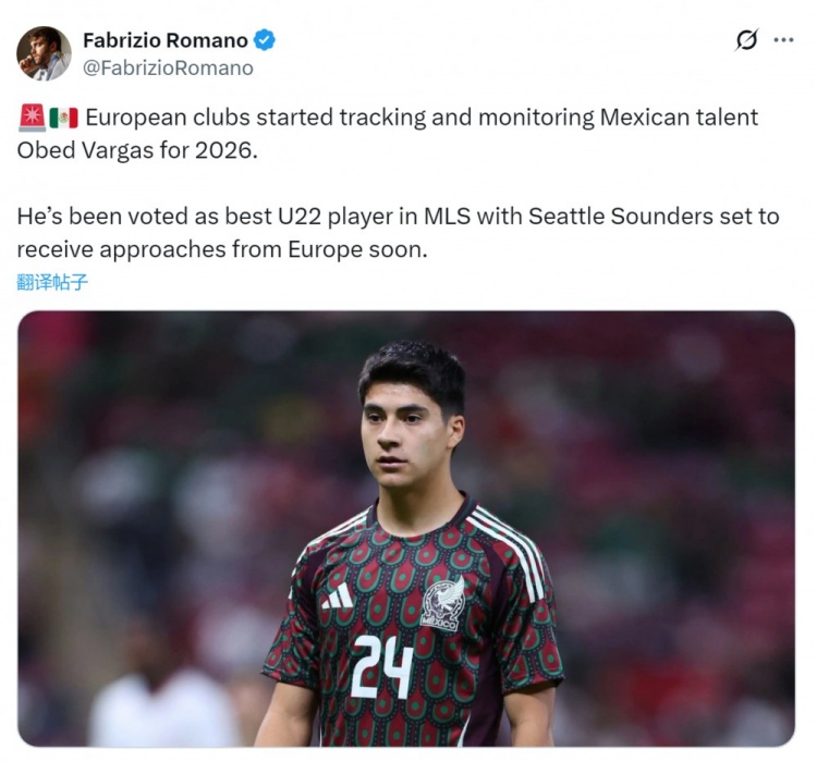 罗马诺知道,遵守于西雅图海湾东说念主的奥贝-巴尔加斯受到外界的怜惜,欧洲俱乐部运行跟踪查验他的进展,将其列为2026年的潜在引援诡计。