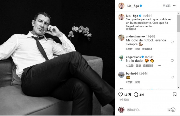 10月15日讯 葡萄牙足坛名宿菲戈更新社媒动态,浮现我方谋略担任某个机构的主席一职。