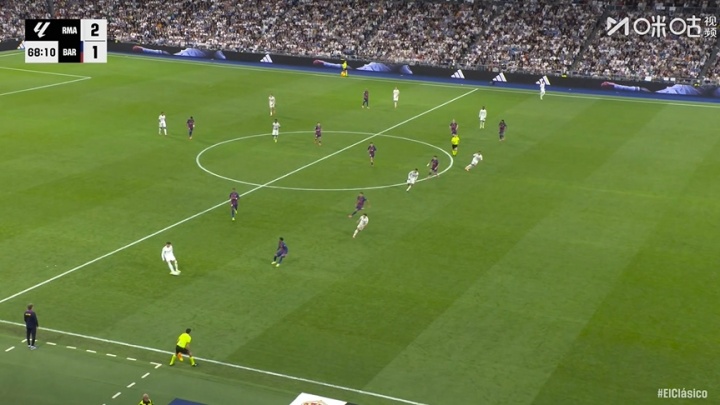 10月27日讯 西甲第10轮国度德比,皇马对阵巴萨。68分钟, 迪亚斯传中,贝林厄姆破门,但被吹越位在先。