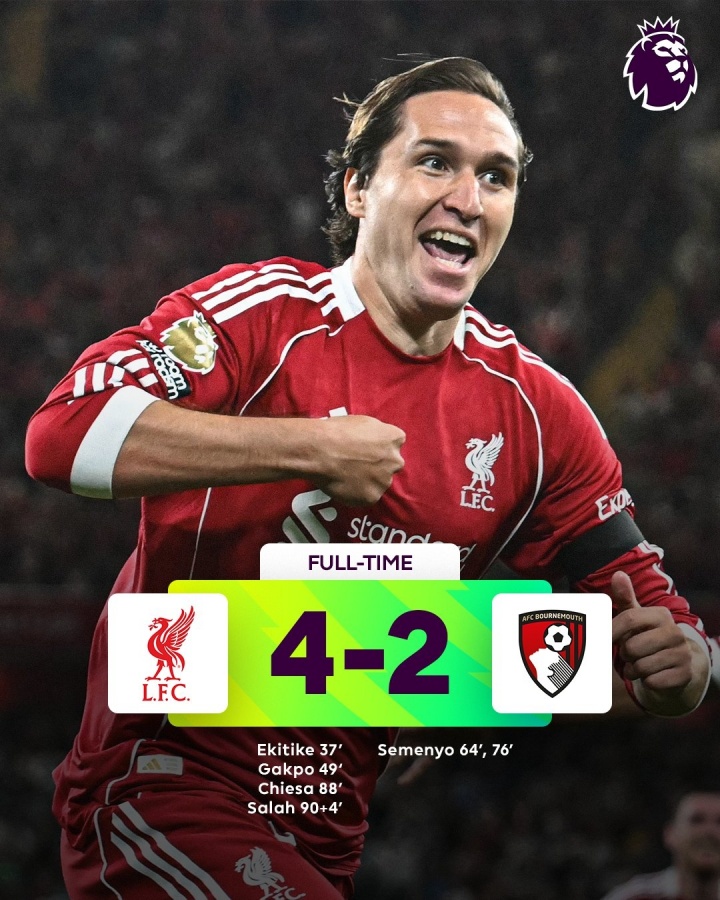 第88分钟,基耶萨替补破门让球队从头卓越,补时萨拉赫进球锁定胜局!