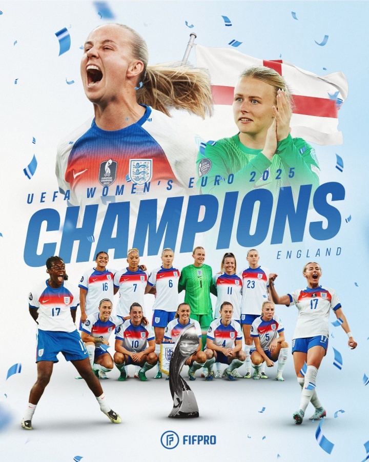 这是英格兰女足队史第二次夺得欧洲杯冠军,上届赛事,英格兰在决赛2-1打败德国夺冠。