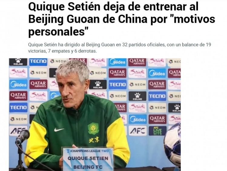 10月6日讯 日前,西班牙媒体《马卡报》、《全国体育报》报说念了北京国安主帅塞蒂恩因“个东说念主及家庭原因”去职的音书。