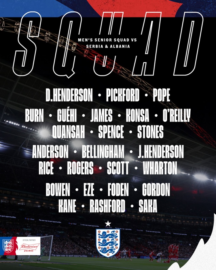 11月07日讯 英格兰公布11月世初赛名单,当今英格兰6战全胜辞世初赛欧洲区K组名循序1,也曾提前晋级2026全国杯正赛。本次名单中,贝林厄姆、福登追想,斯科特初度入选,斯凯利和阿诺德无缘名单。