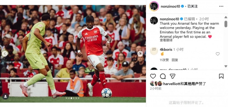 马杜埃凯在社媒晒出本场相片,配文回来写说念:“感谢昨日比赛中阿森纳球迷们的柔软迎接,能以阿森纳球员身份在酋长球场首秀嗅觉太相配了!”