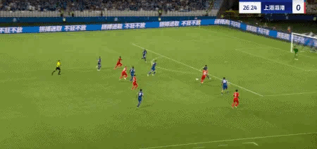 第26分钟,高天意左路角球传中,朱辰杰小禁区右侧头球将球蹭出底线。