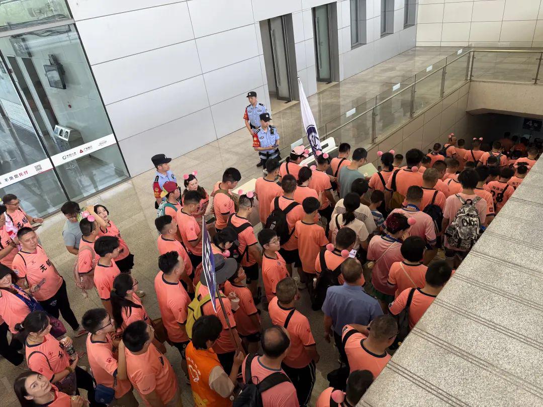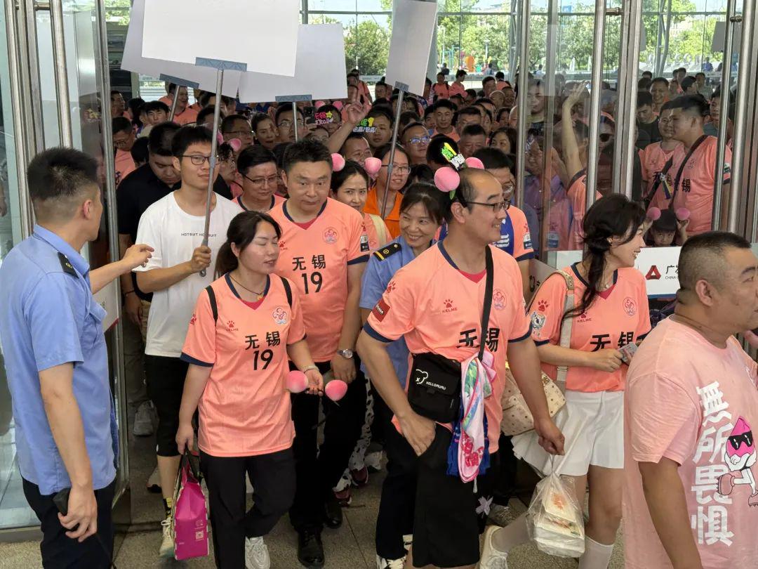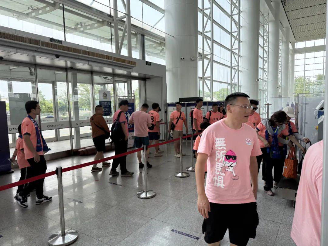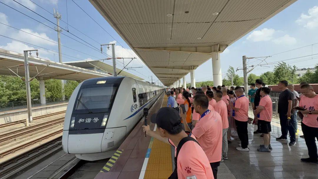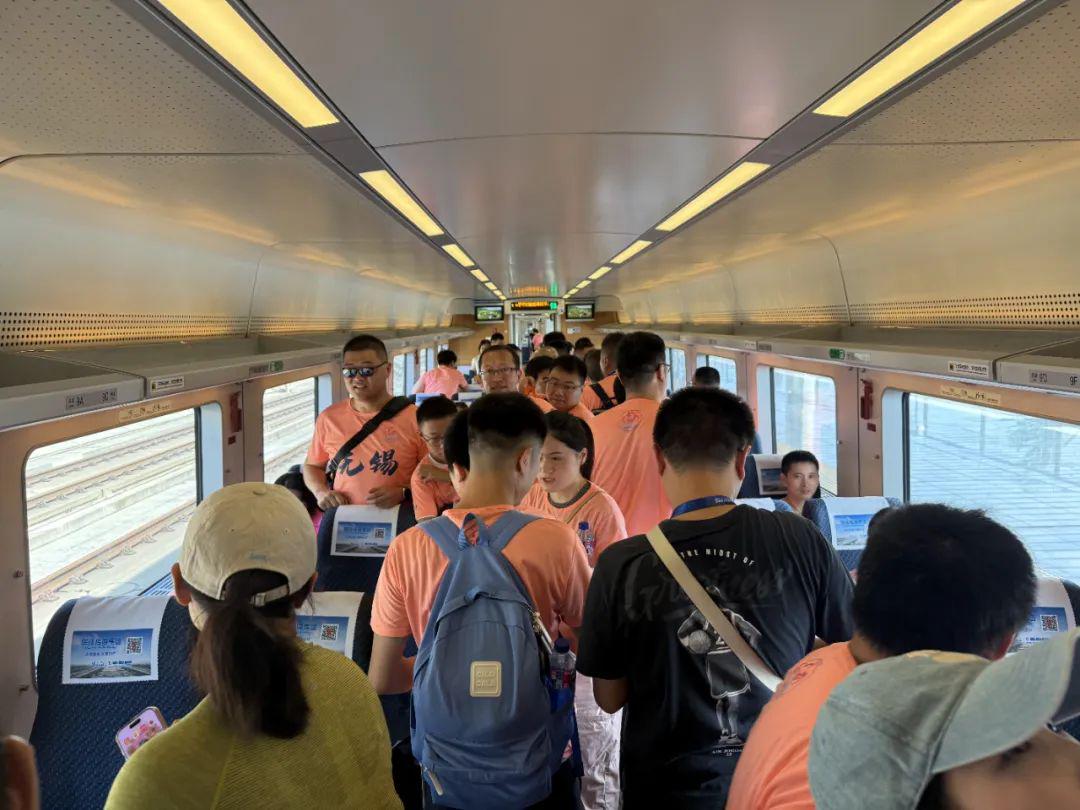 乘坐D9556次“苏超”球迷专列赶赴宿迁